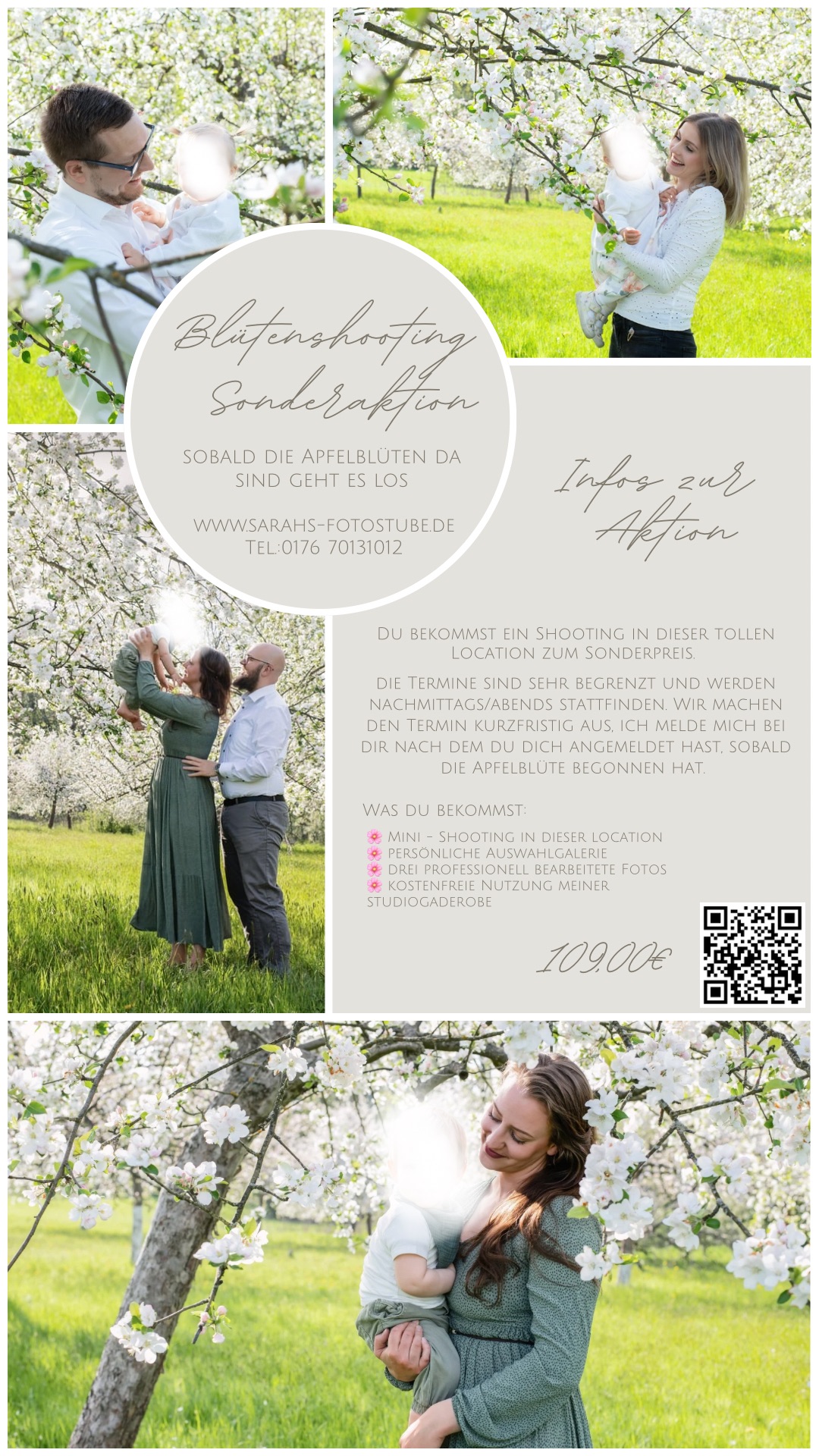 Du bekommst ein Mini-Shooting in einer wunderschönen Location mit Apfelblüten, inklusive 3 Fotos zum digitalen Download.